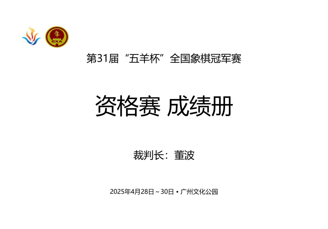 4月30日, 第31届“五羊杯”全国象棋冠军赛资格赛结束,王禹博、陈泓盛、曹岩磊、王昊、尹昇、杜晨昊、王天琛、杨世哲、何文哲、李翰林、刘子健、梁运龙、莫梓健、吴金永、黄光颖、程宇东、刘奕达、刘柏宏、许文章、吴魏、沈思凡(女)、华辰昊、李雪松、顾博文等24位大师晋级复赛。